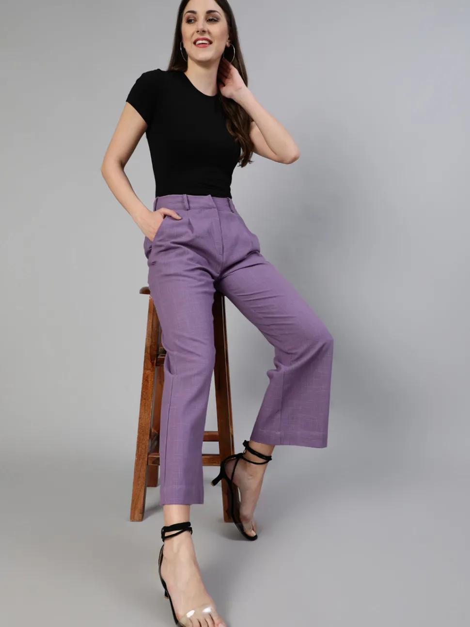 Make a statement in our lavender cotton slub flared high-rise parallel pants. Featuring front pleat details in front, ho…