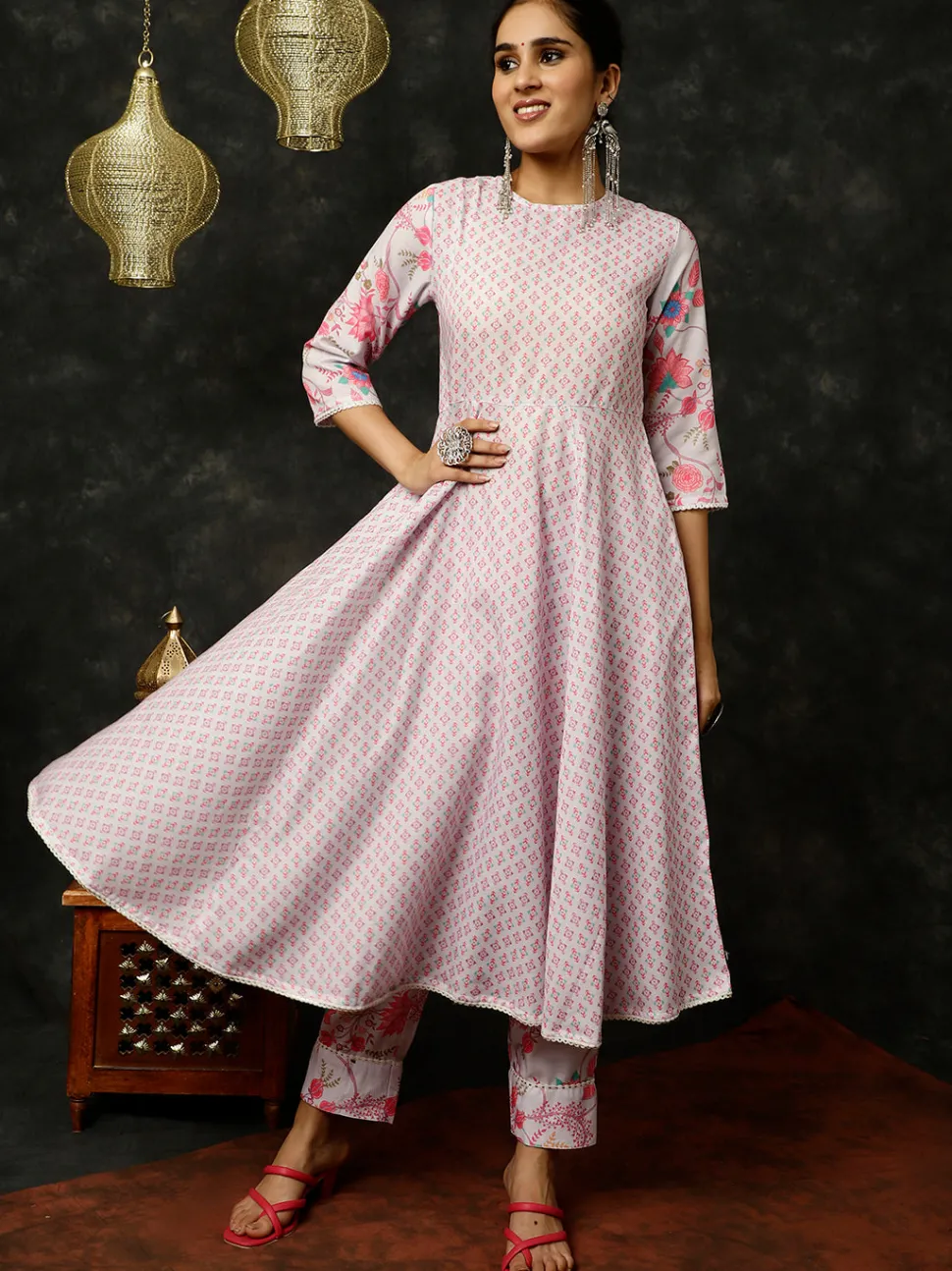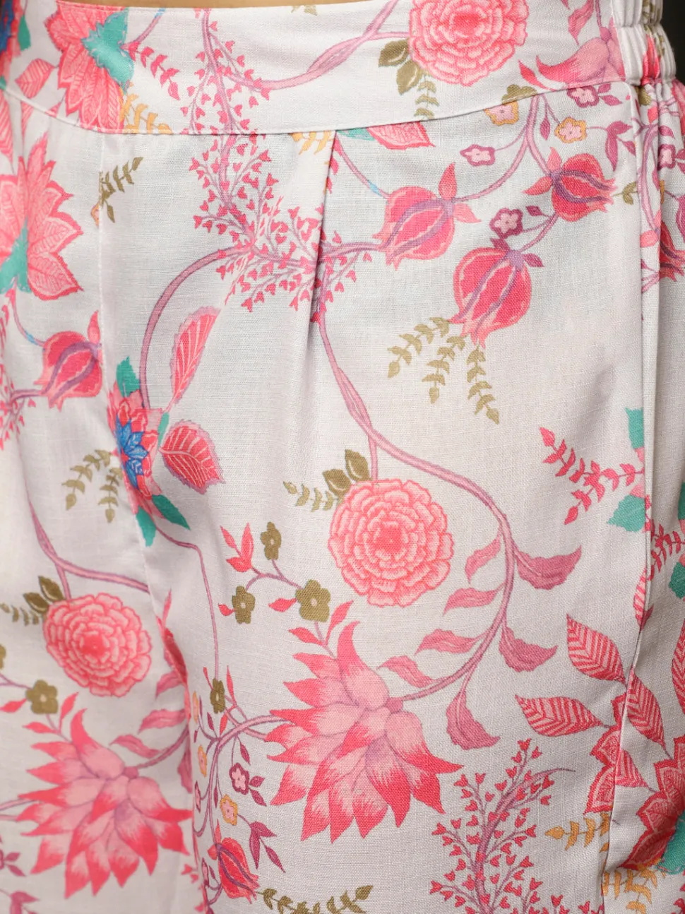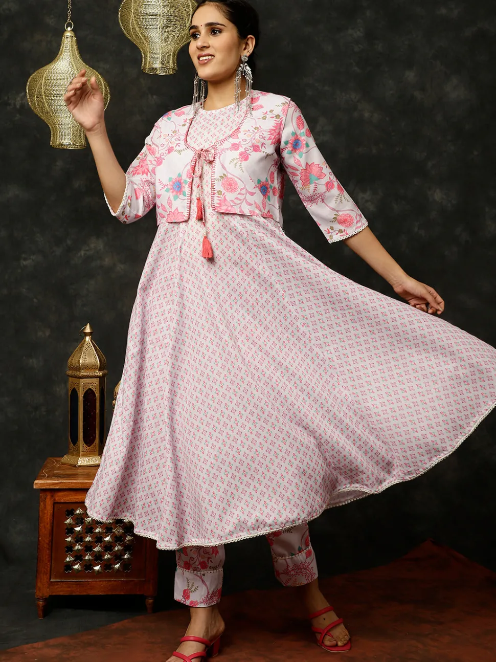 Jaipur Kurti Ethnic Print Flared Kurta With Shrug And Pants