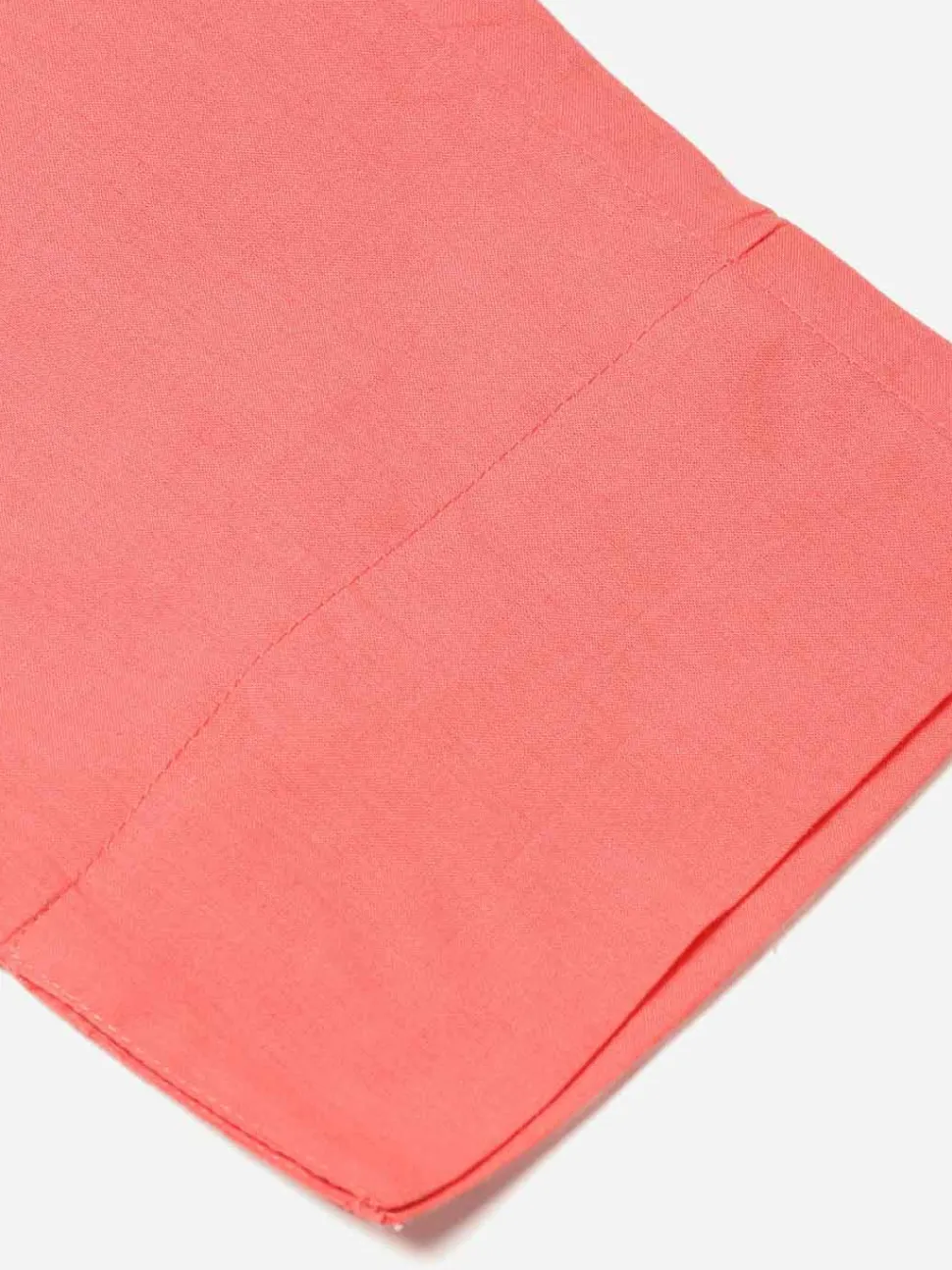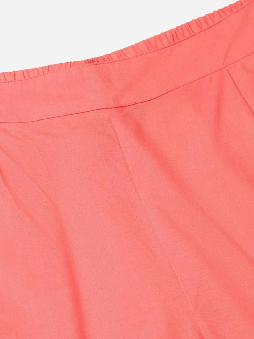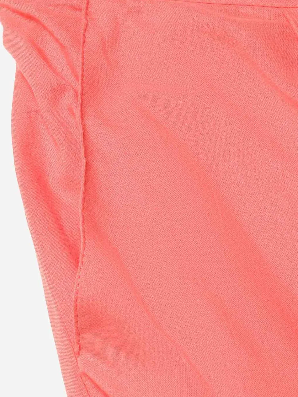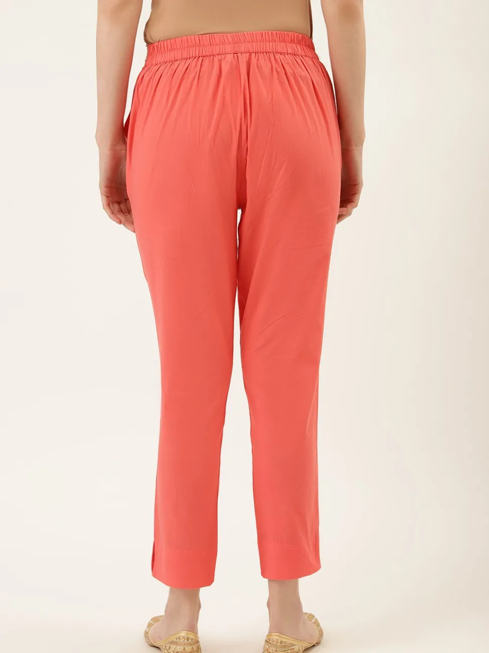Pair your favorite kurti and kurtas with this Peach Ethnic Wear Cotton Pants. Made in cotton cambric fabric, these pants have front pleats with both side pockets and a partially elasticated waistband.