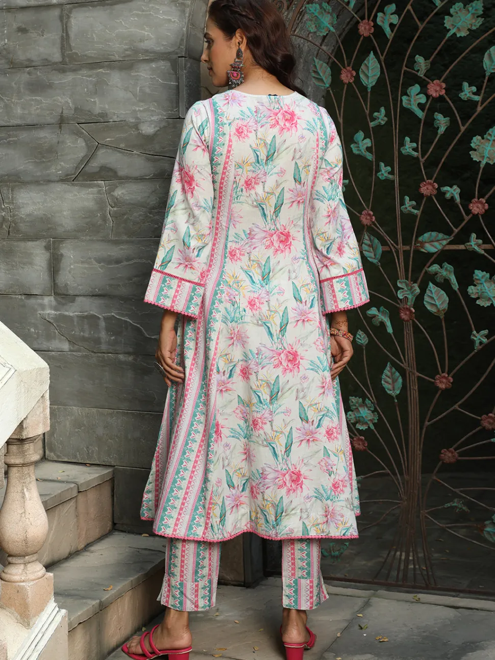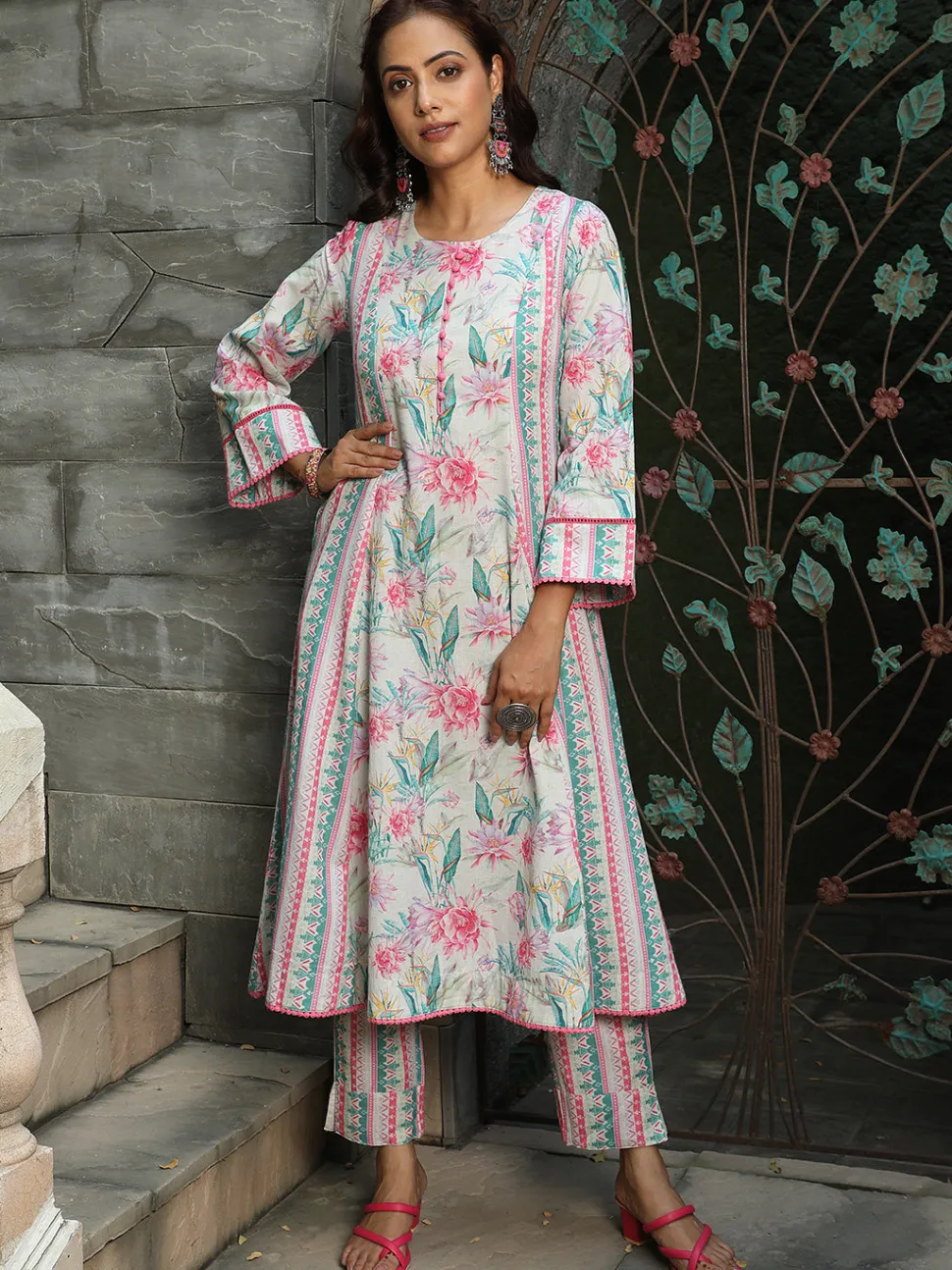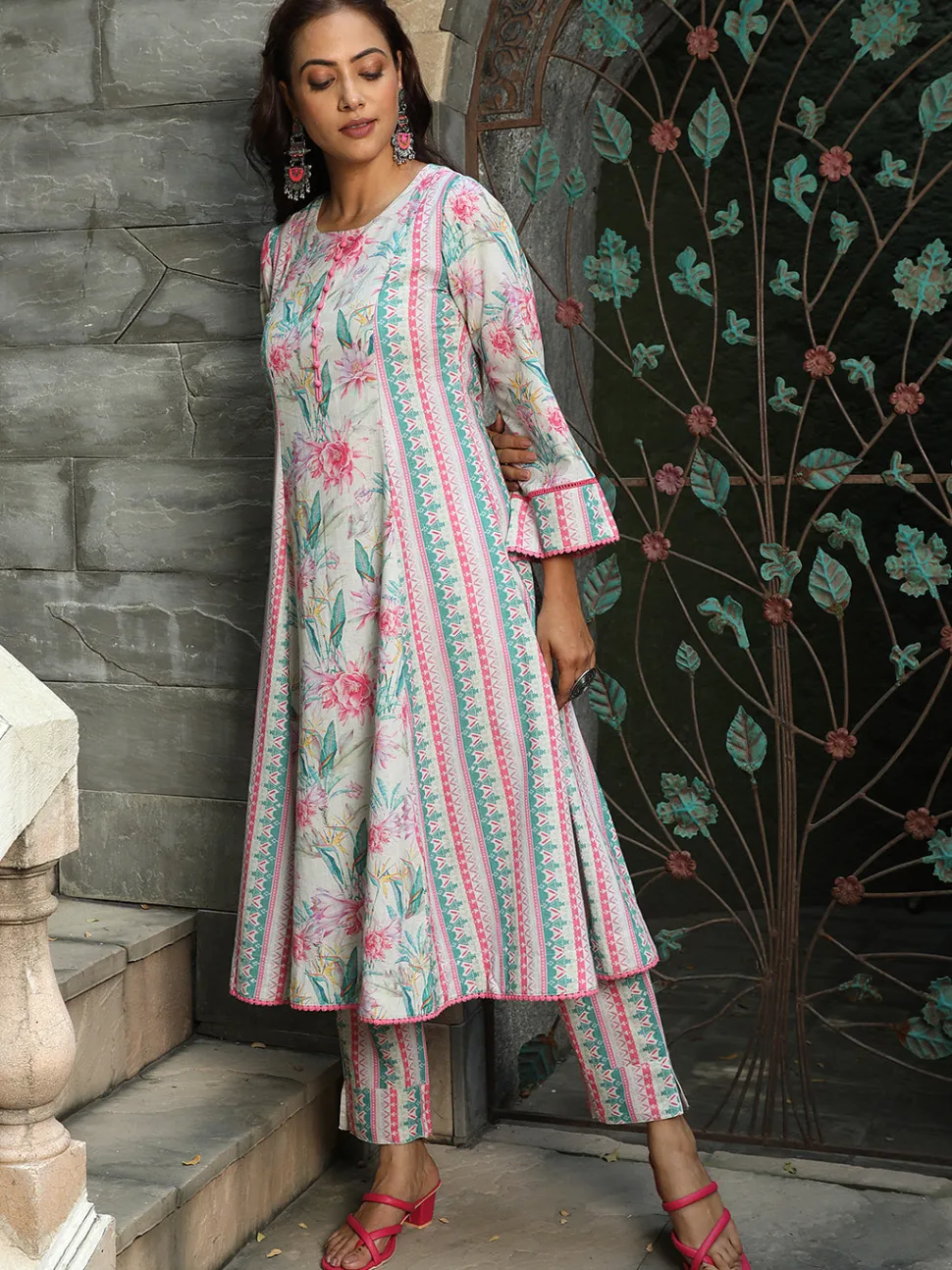 Be the first to review “Jaipur Kurti Floral Print Flared Kurta With Pants” Cancel reply
