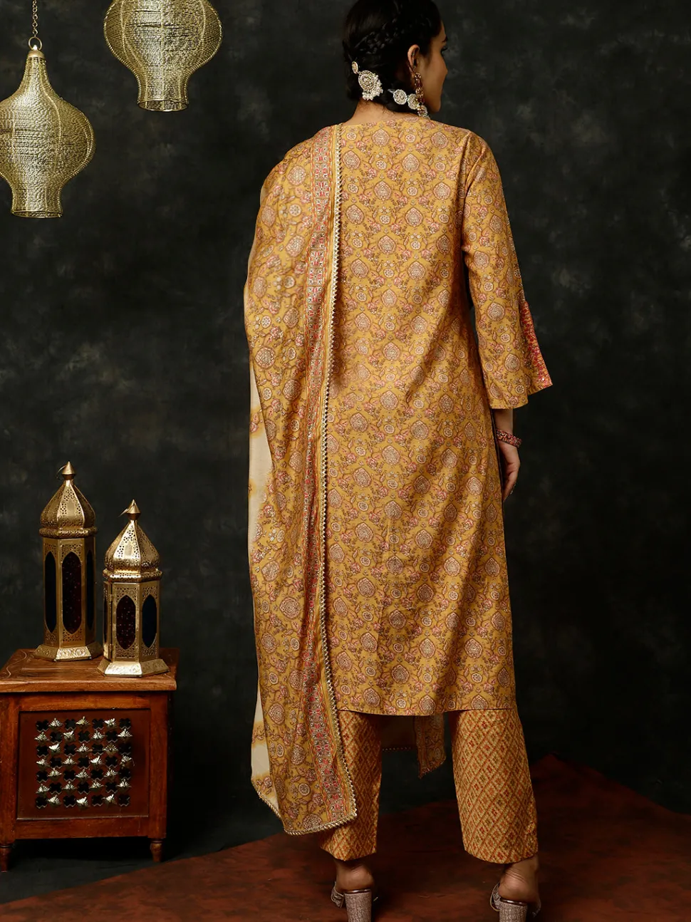 Jaipur Kurti Foil Printed Kurta With Pants And Dupatta